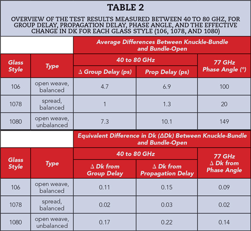 Measured Results The average group delay data differences between traces aligned with knuckle-bundle versus bundle-open regions are shown in Table 1.